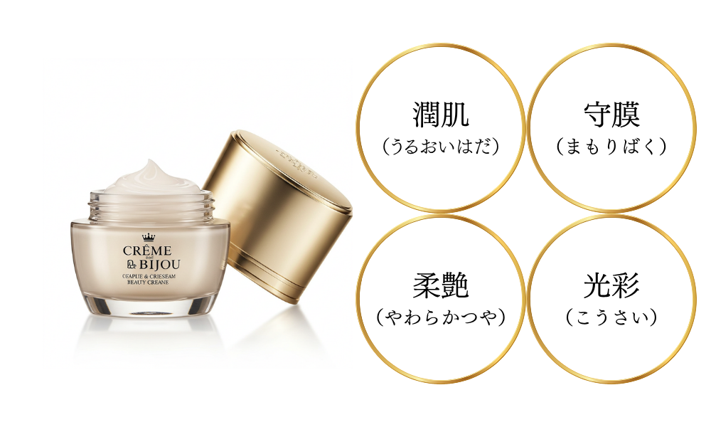 Crème de Bijouは、乾燥肌に悩む女性のために特別に開発された高保湿クリームです。厳選された100%ナチュラル成分を使用しており、肌に優しく、しっかりと潤いを与えます。毎日のケアで、肌の乾燥を防ぎ、しっとりとした滑らかな肌へと導きます。また、長時間にわたる保湿効果を実感できるため、日中の乾燥や肌のカサつきが気になる方にも最適です。肌本来の美しさを引き出し、毎日をもっと輝かせるために、Crème de Bijouがサポートします。